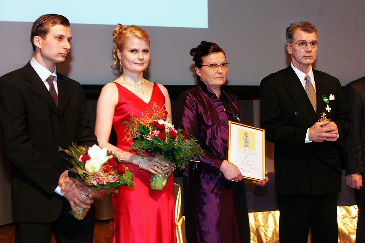 In the picture Halttunen family members who work for the company are receiving the award for the North Carelian Company of The Year in 2006.