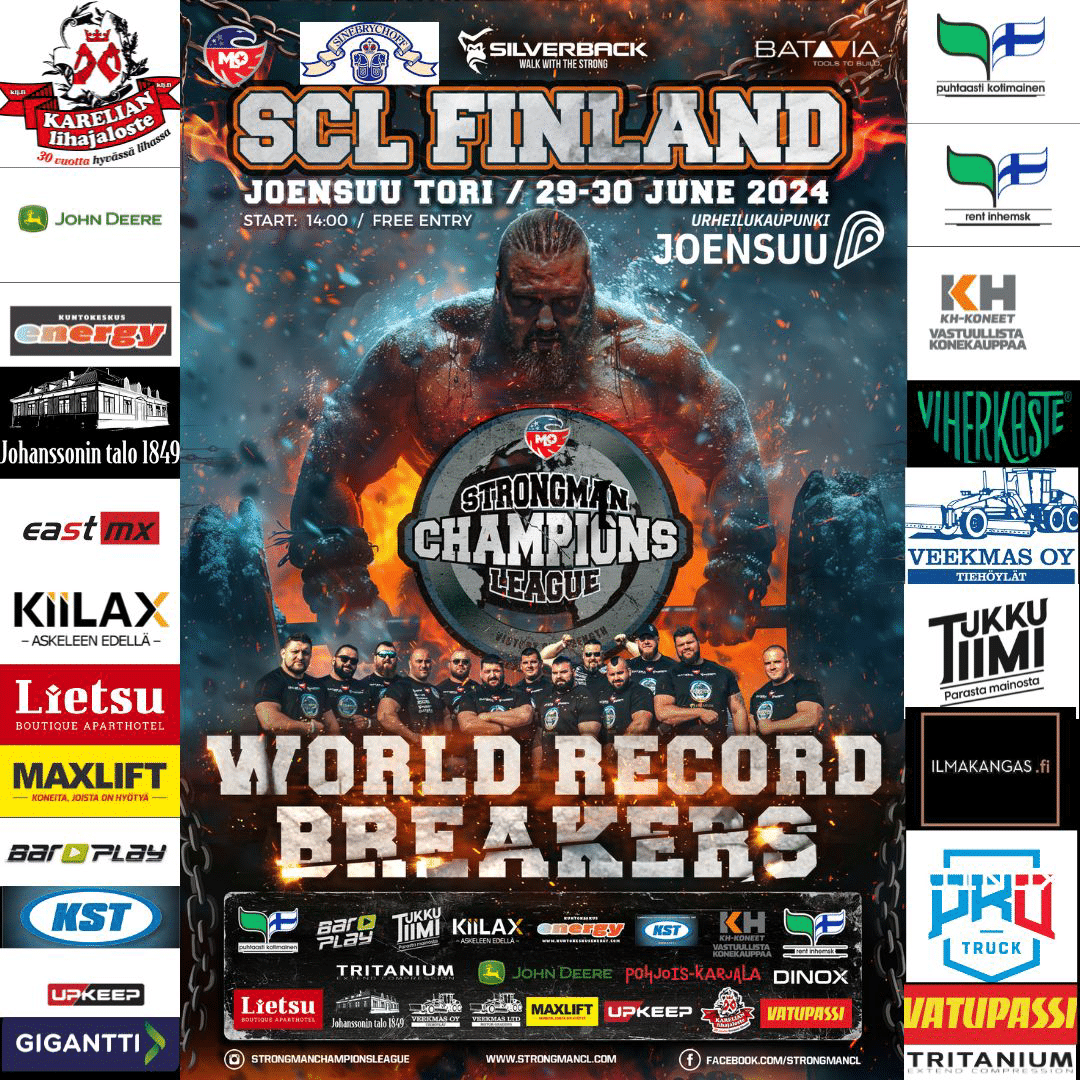 Återigen inleder Veekmas FG 2428 dragningen av sommarens Strongman Champions League World Record Breakers tävling i Joensuu, Finland, start lördag 14:00. Tävlingen pågår i två dagar under Joensuu-marknad den 29–30 juni 2024. De bästa och starkaste männen från olika länder deltar. Det är 12 tävlande och självklart finns regionens egna Mika Törrö med som deltagare och har flera år tidigare utsetts till Finlands starkaste man. Kom och titta, fylld av förväntan och spänning att se Mika och de andra i finska styrkelaget hur de klarar sig i år.